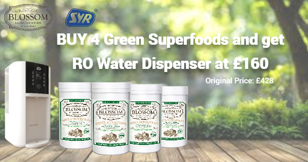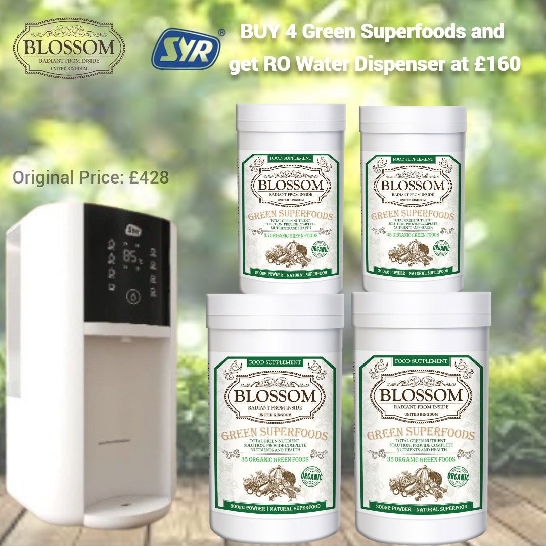 Buy 4 pcs of Blossom Green Superfoods and redeem SYR RO Water Dispenser at GBP 160 [Discount Code: SYR Bundle Set]