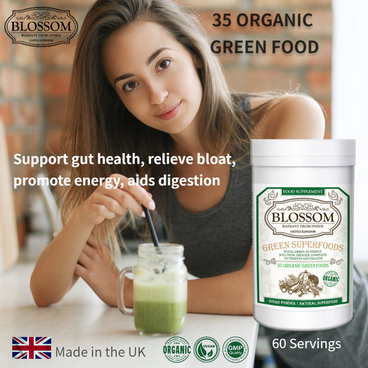 Blossom Green Superfoods for Digestive Health, Greens Powder with seeds, herbs, enzymes and sprouts for Bloating and Gut Support, Green Juice Mix | 60 Servings (300g)