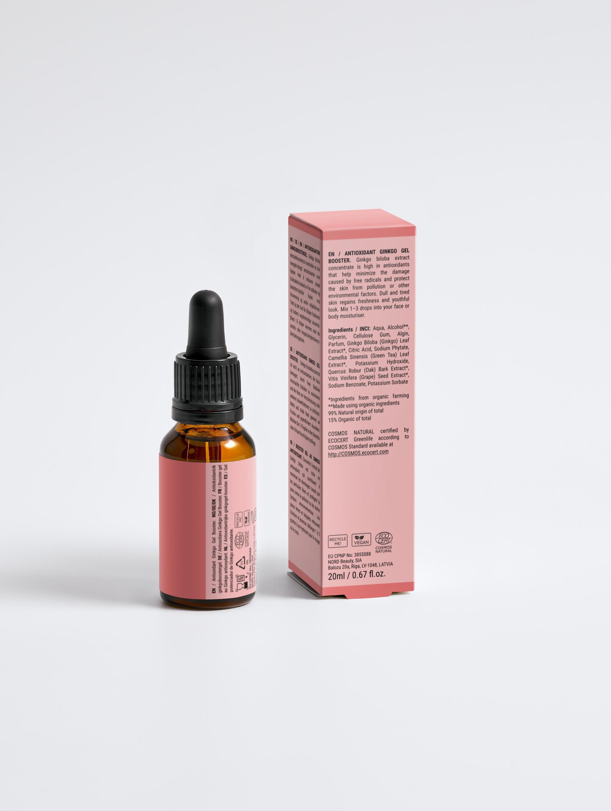 Ginkgo-biloba-Extraktkonzentrat ist reich an Antioxidantien, die helfen, die durch freie Radikale verursachten Schäden zu minimieren und die Haut vor Verschmutzung oder anderen Umweltfaktoren zu schützen. Stumpfe und müde Haut gewinnt ihre Frische und ihr jugendliches Aussehen zurück. Mischen Sie 1–3 Tropfen in Ihre Feuchtigkeitscreme für Gesicht oder Körper.