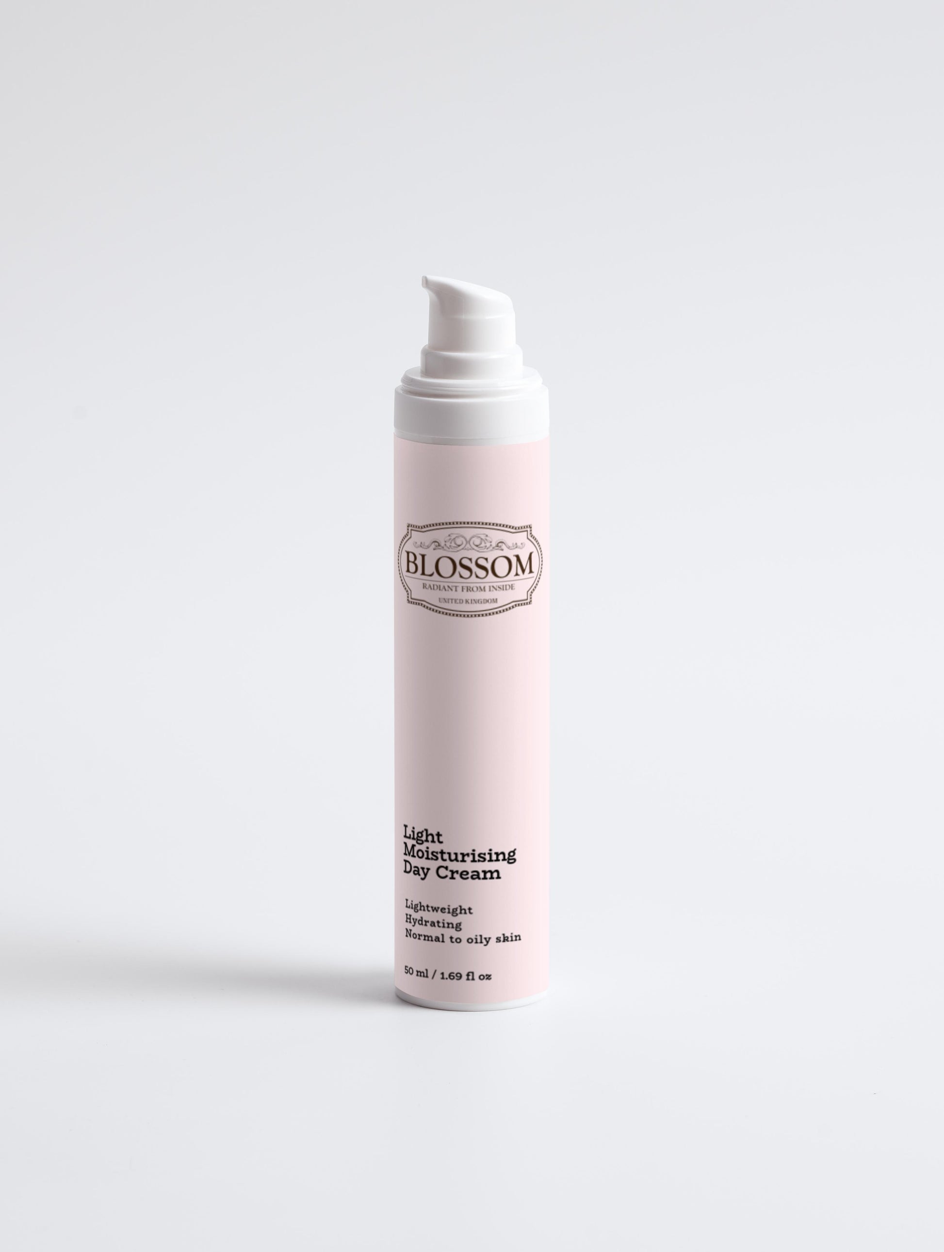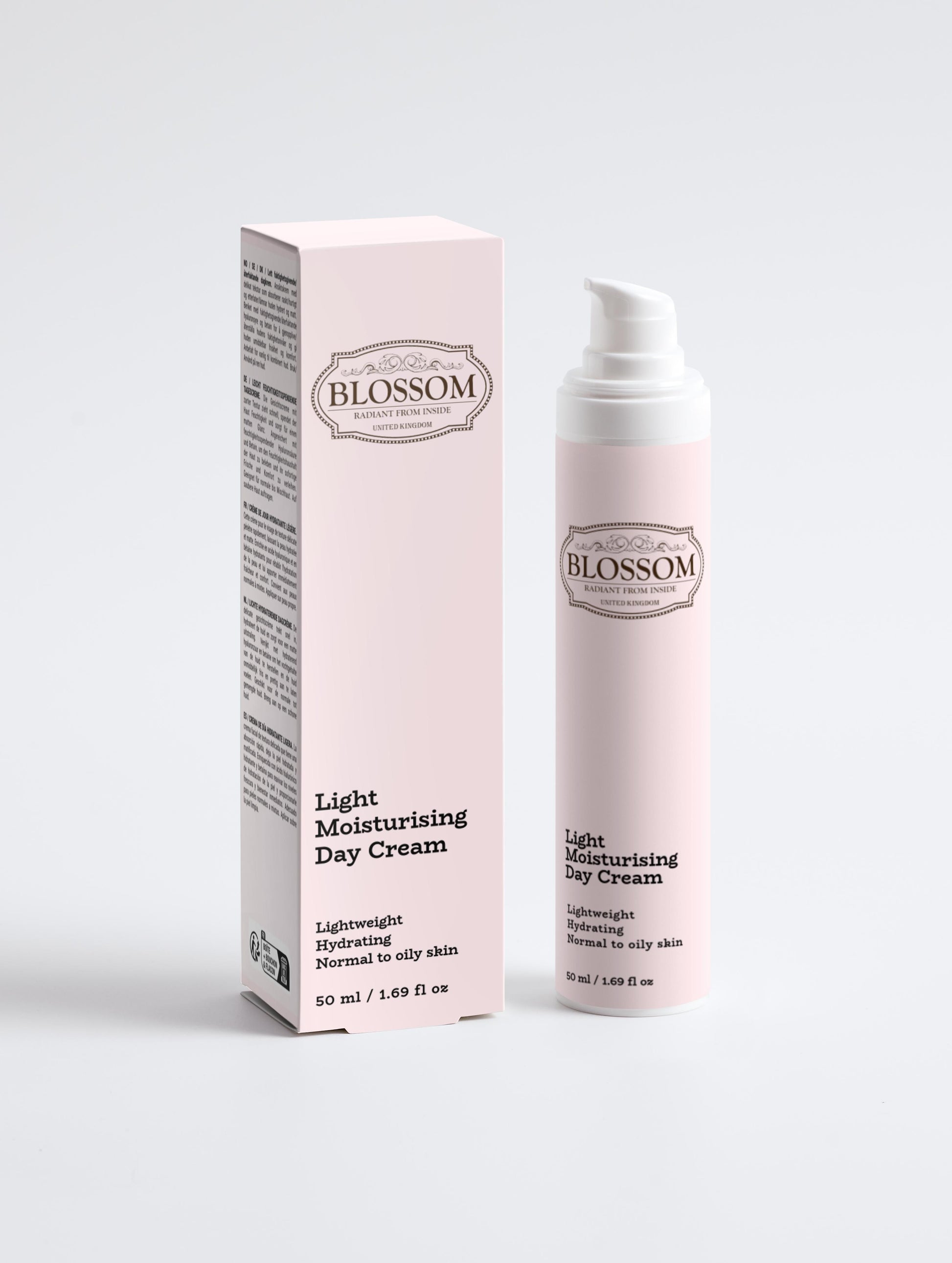 Feuchtigkeitsspendende Tagescreme Blossom Light – angereichert mit feuchtigkeitsspendender Hyaluronsäure und Betain, um den Feuchtigkeitsgehalt der Haut wiederherzustellen und ihr sofortige Frische und Wohlbefinden zu verleihen. Die Gesichtscreme mit zarter Textur zieht schnell ein und hinterlässt eine hydratisierte und matte Haut. Geeignet für normale bis Mischhaut. Auf saubere Haut auftragen.