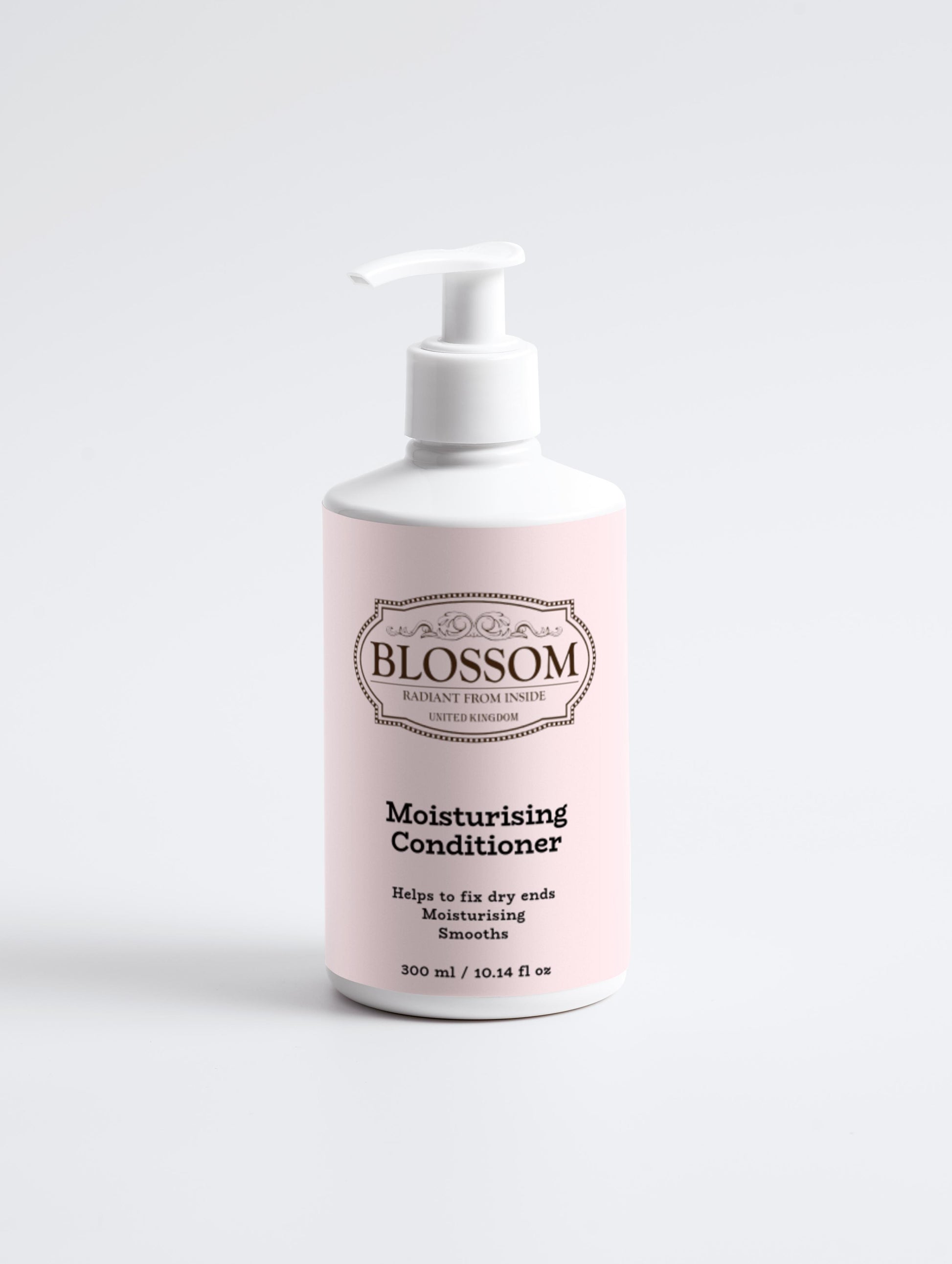 Der feuchtigkeitsspendende Conditioner Blossom pflegt das Haar und macht es geschmeidig und leicht frisierbar. Mit Arganöl und Weizenprotein angereichert, um trockene Spitzen zu pflegen und die Haarstruktur zu verbessern. Auf die Haarspitzen auftragen, 2–5 Minuten einwirken lassen und ausspülen.